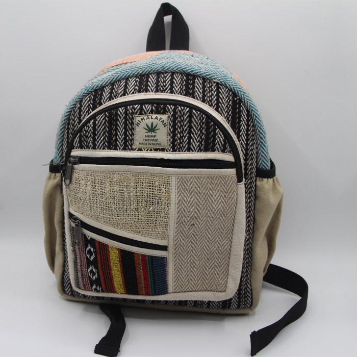 Hemp in Nepal a leading hemp industry in Nepal offer Hemp and Gheri Patchwork Small Hemp Back Pack on wholesale price which is made by using natural pure hemp yarns and fabric from the Himalayan regions of Nepal