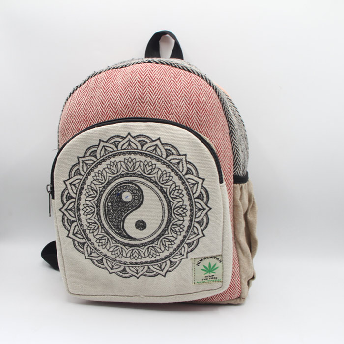 Boho vintage herringbone mandala art print hemp bag